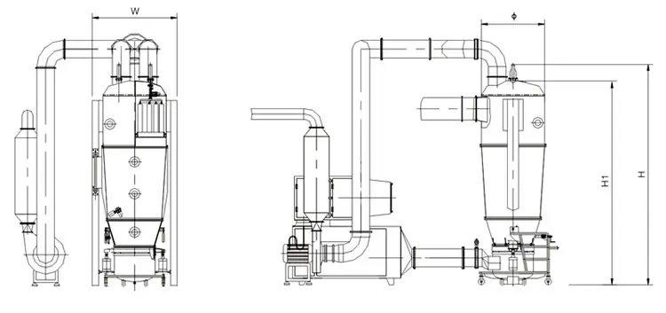 沸腾制粒法是喷雾技术和流化技术综合运用的结果,混合—制粒—干燥在同一密闭容器内一次完成,实现一步法制粒,原料粉末在容器内建立流化,同时将粘合剂雾滴喷至流化界面成粒,经干燥挥发水份随排风带出机外。