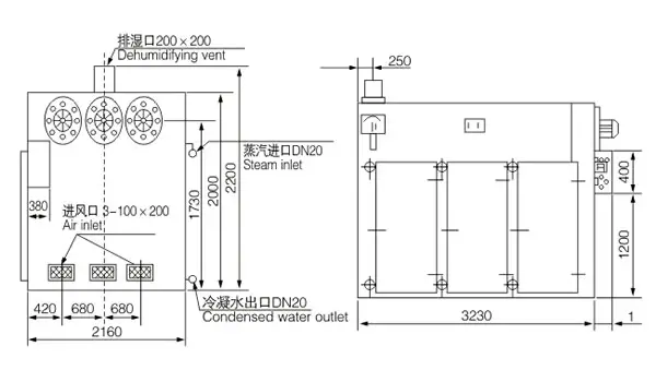 • 加热热源有蒸气、电、远红外、电蒸气两用,供用户选择。