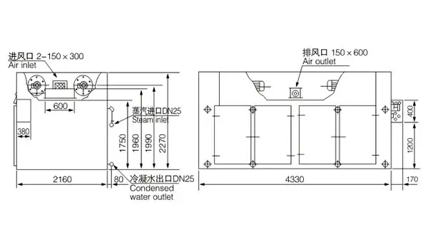 • 利用强制通风作用,箱内设有可调式分风板,物科干燥均匀。热源可采用蒸汽,导热油、热水、电、远红外等,选择广泛。
