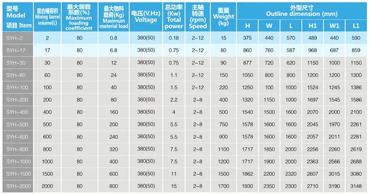 该机工作时,混料器具有三维空间运动,在进行自转的同时进行公转,混料器一方面具有强烈的湍动作用,加速了物料的流动和扩散,另一方 面有翻转和平移运动,克服了离心力的影响,使物料不会产生比重偏析和集聚现象,也无死角,保证混合均匀。特点