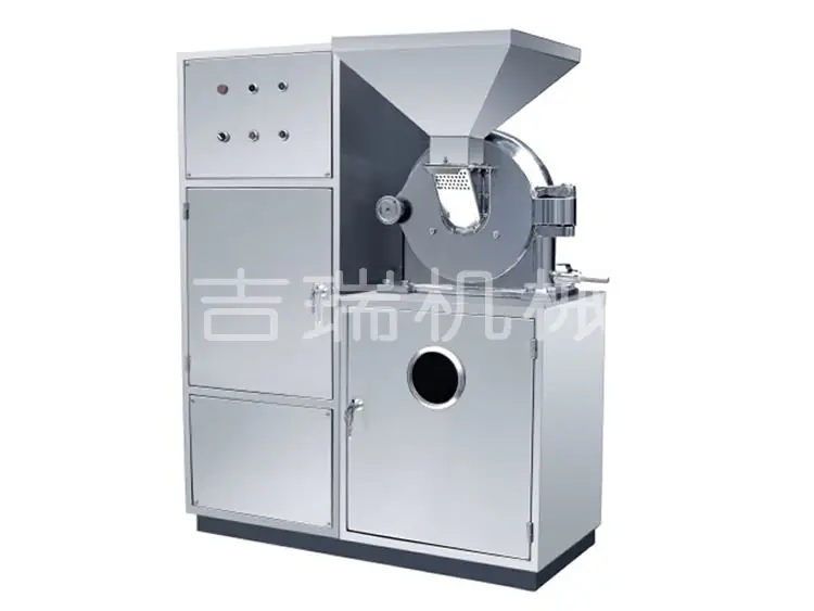 本粉碎机组由GF300A粉碎机和集粉装置组成,解决物料在粉碎过程中粉尘飞扬。本机的工作原理是物料进入粉碎室,在高速旋转的活动齿盘与固定齿盘问受齿的冲击、剪切、摩擦及物料间的相互撞击的作用下被粉碎、经筛网筛选后即成为所需粉料。本粉碎机组的粉碎机和集粉装置,全部采用不锈钢材料制作,符合药品生产的GMP要求。