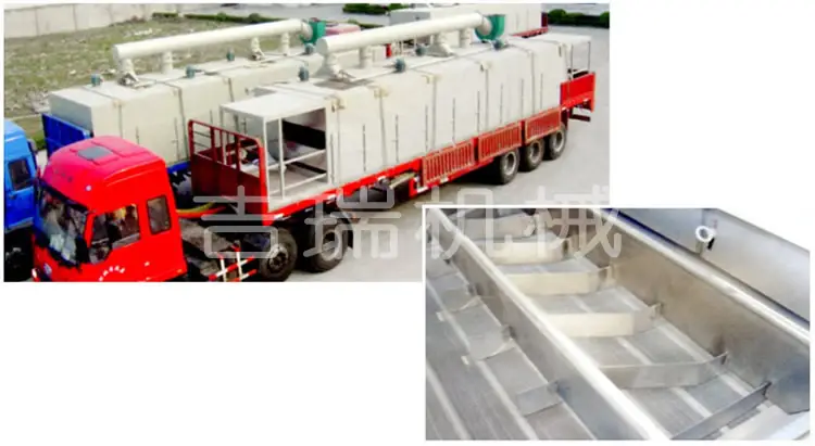 物料由加料器均匀地铺在网带上,网带一般采用12—60目不锈钢丝网,由传动装置拖动在干燥机内移动。干燥机由若干单位组成,每一单元热风独立循环,部分尾气由专门排湿风机排出,废气由调节阀控制,热气由下往上或由上往下穿过铺满物料的网带完成热量与质量传递的进程,带走物料水份。网带缓慢移动,运行速度可根据物料温度自由调节,干燥后的成品连续落入收料器中。上下循环单元根据用户需要可灵活配备,单元数量可根据需要选取。