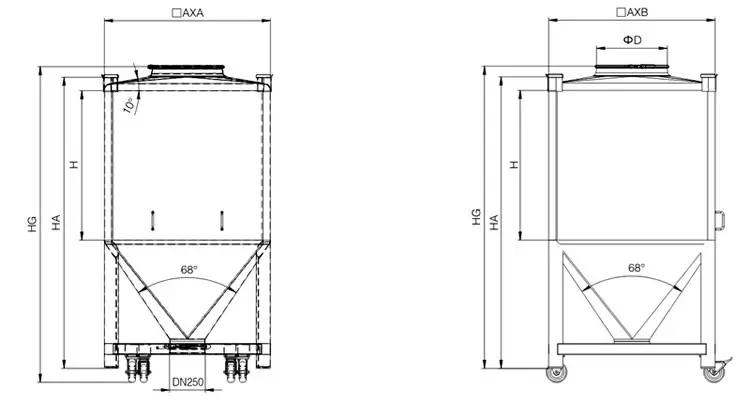 • 该料桶为方锥形,外壁采用亚光处理和抛光相结合,造型美观。